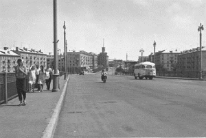 Новый коммунальный мост через р. Иртыш (Ленинградский мост) вступил в строй. Разрезана алая лента над проезжей частью моста. Движение открыто! По этому поводу состоялся митинг мостостроителей и трудящихся города. 5 ноября 1959 года, накануне его ввода в эксплуатацию, в газете «Омская правда» вышел целый ряд статей под единым заголовком «С победой вас, МОСТОСТРОИТЕЛИ!» и большой фотографией нового моста, «величественно перекинувшегося через Иртыш». Строительство моста было закончено на год раньше срока, к 42-й годовщине Октября. Это была действительно большая победа коллектива мостопоезда № 413, переведенного в г. Омск из Краснодарского края. Сбылась давняя мечта омичей, особенно, жителей Кировского района – иметь надежную постоянно действующую связь с остальными районами города. Открылось регулярное автобусное сообщение через мост, а в 1960 году началось строительство и троллейбусной линии. Связь между правым и левым берегами перестала зависеть от ранее существовавшего наплавного моста, не отвечающего требованиям интенсивного развития города.