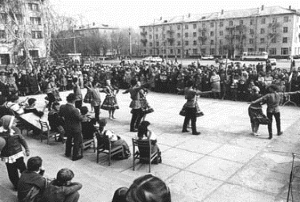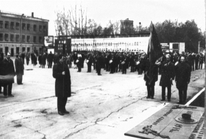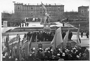 Cостоялось торжественное открытие Мемориального сквера – памятника борцам революции, реконструированного по проекту архитектора В.Б. Алхимова. Зажжен Вечный огонь. В этот день улицы города были заполнены людьми с флагами и транспарантами. Участники митинга исполнили «Интернационал», на могилы были возложены венки.