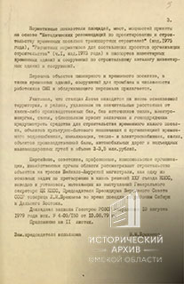 Докладная записка зам. председателя Омского облисполкома В.М. Брюханова в Комиссию по благоустройству БАМа СМ РСФСР о подготовке к строительству объектов жилищно-гражданского назначения на трассе Байкало-Амурской магистрали.13 августа 1979 г.