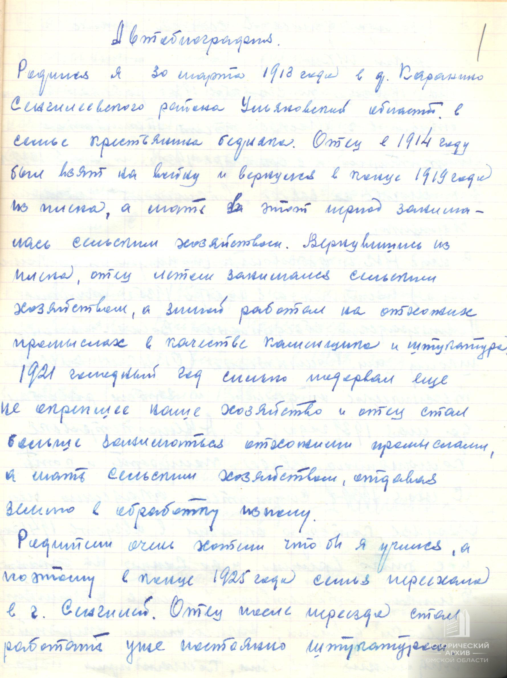 Автобиография А.П. Дмитриева. 10 февраля 1959 г.
