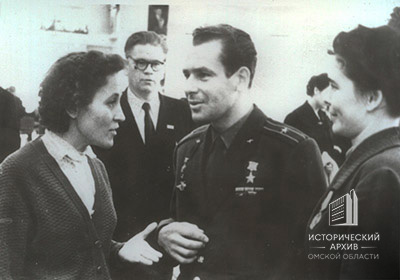 В целях популяризации научных знаний о космосе советские летчики-космонавты вели активную общественно-политическую деятельность. Ю.А.Гагарин побывал с визитами в 30 странах мира – Великобритании, Чехословакии, Финляндии, Болгарии, Египте и др. 24 сентября 1963 г. Юрий Алексеевич на самолете Ил-18В № 75847 вылетел из аэропорта Внуково в Красноярск для участия в Слете молодых строителей Сибири и Дальнего Востока. По пути лайнер поздно вечером совершил промежуточную посадку в г. Омске. Во время дозаправки и техобслуживания самолета в ресторане Омского аэропорта был организован торжественный ужин в честь первого космонавта, на котором присутствовали руководители Омской области (в том числе председатель Омского промышленного облисполкома Николай Аркадьевич Хелмицкий). Около 3 часов ночи уже 25 сентября самолет вылетел из Омска и взял курс на Красноярск. Следом за Гагариным в 1965 году Омск посетили космонавты: Г. Титов, В. Терешкова, А. Николаев и В. Комаров.