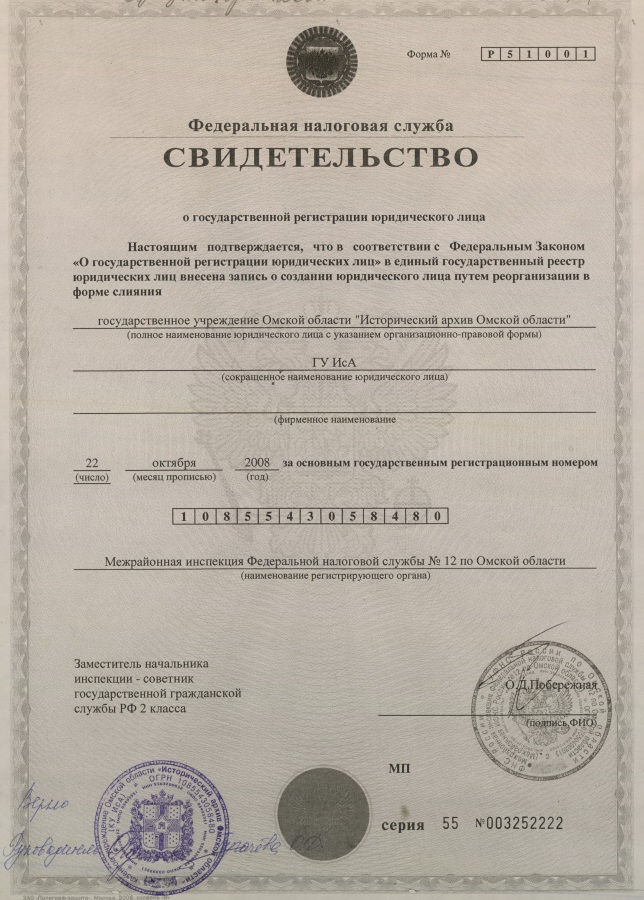 Омская областьПолное наименование Учреждения: Бюджетное учреждение Омской области "Исторический архив Омской области"